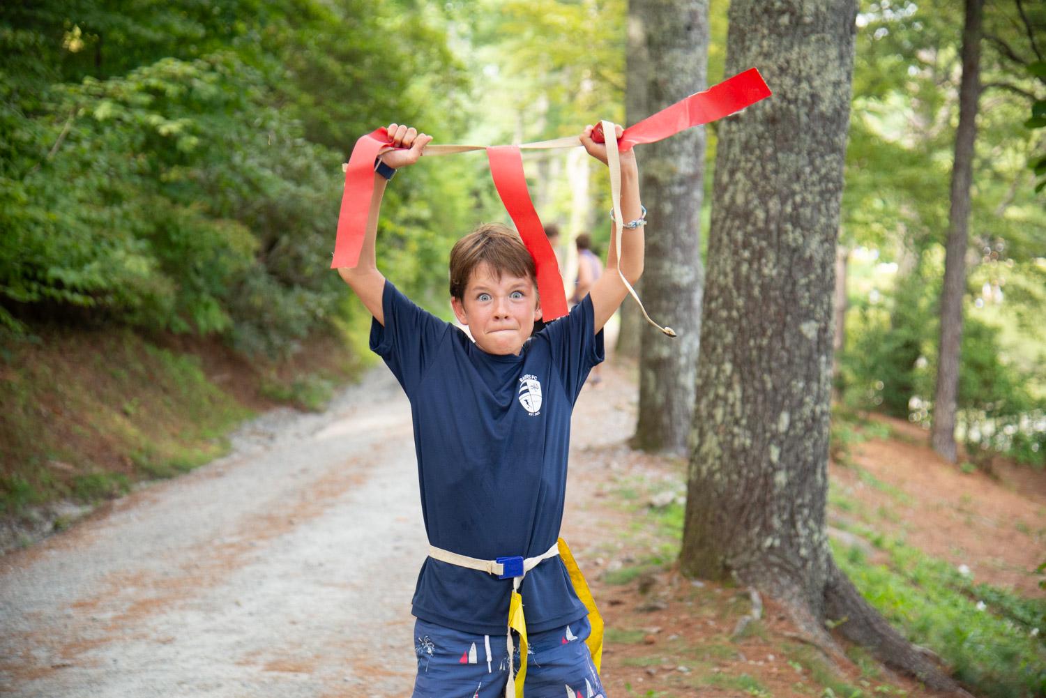 Wild Wild West is a competitive all-camp game that involves each team member having a flag belt. Each color, blue, red, green, or yellow could only pull one other color’s belt. For example, red could pull blue while blue could pull green.