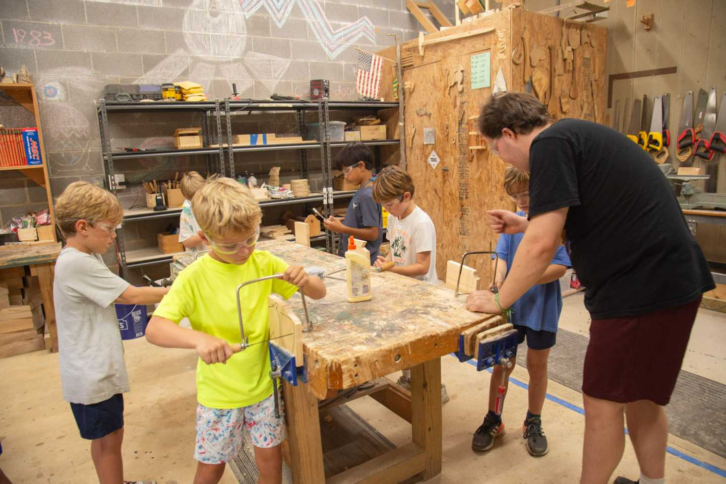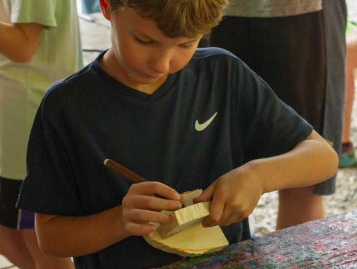 Woodworking: In woodworking the boys are able to learn the basics of cutting wood, sandpapering and gluing the wood. At the end of the activity, they will have created an ornament that is a horse head shape to take home with them. They get to cut, assemble and paint the wood in order to achieve this.