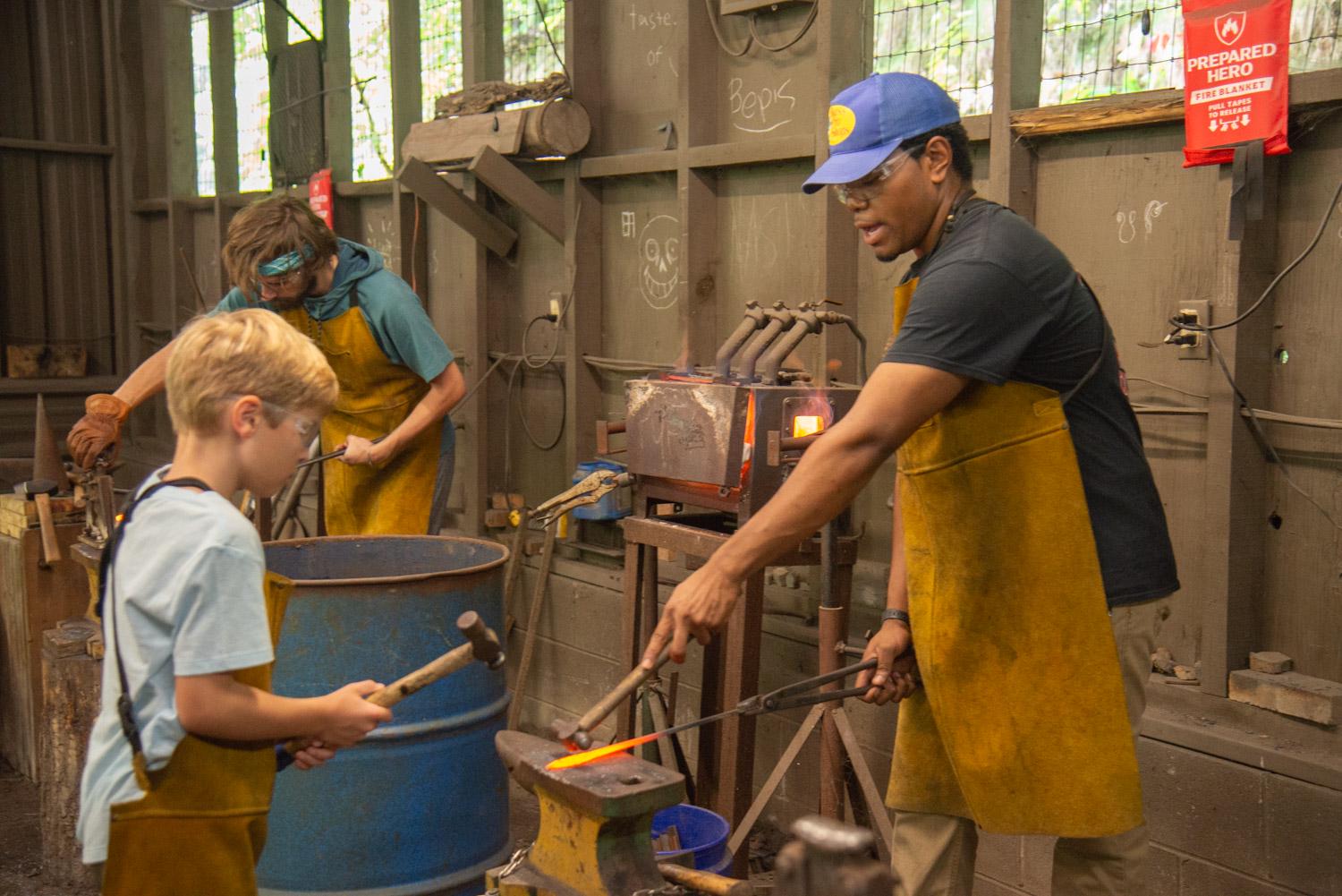 Blacksmithing: The boys will learn the basics of blacksmithing, including how to better understand the heating and cooling process, as well as learning how to shape the metal. At the end of each session the boys will be given a metal leaf to remind them of their time at Falling Creek.