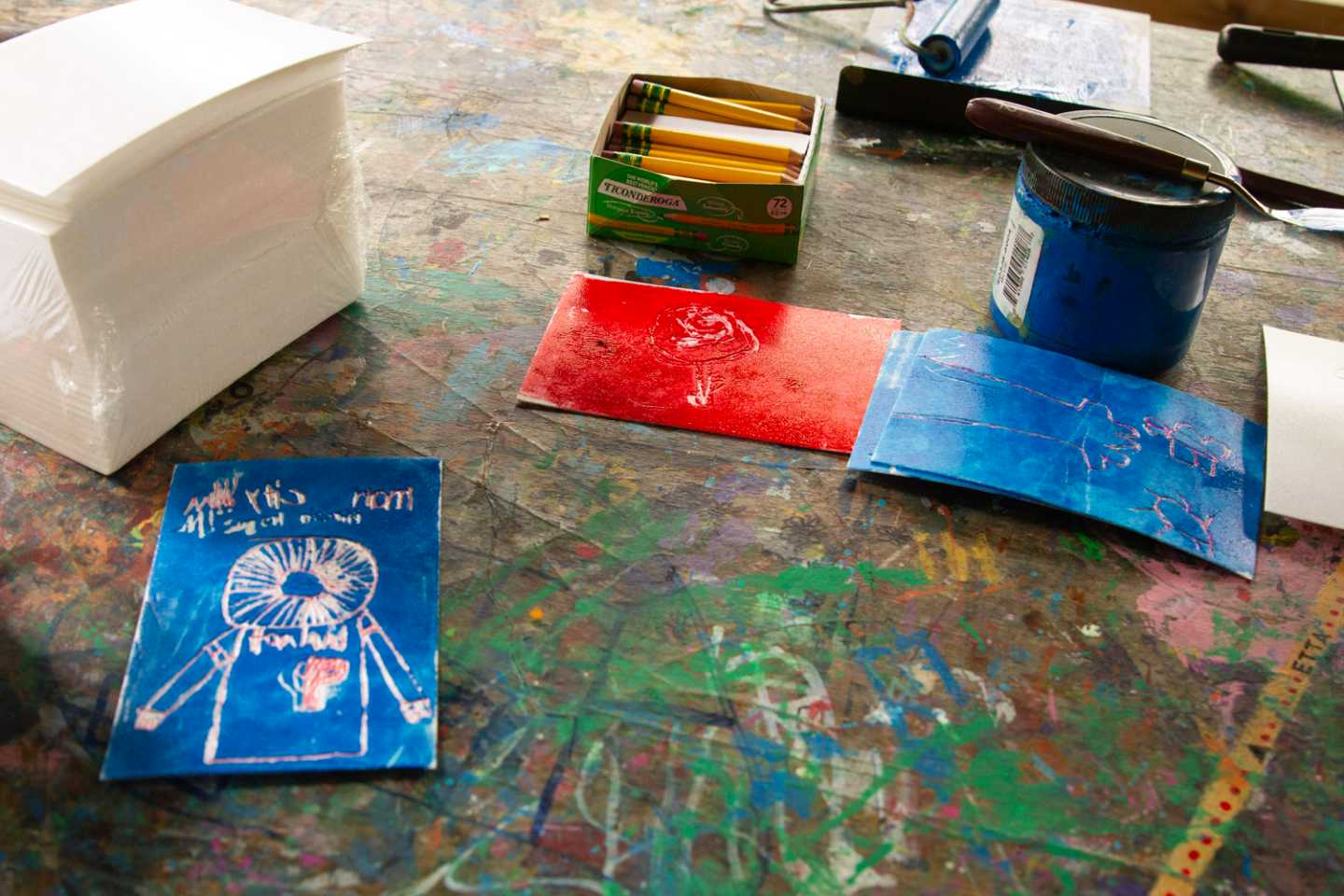 Arts & Crafts: This activity provides the boys an opportunity to connect with their creative sides. The boys get to create lino prints which involves them carving out a picture on a lino pad and then using ink to press print the picture onto paper.