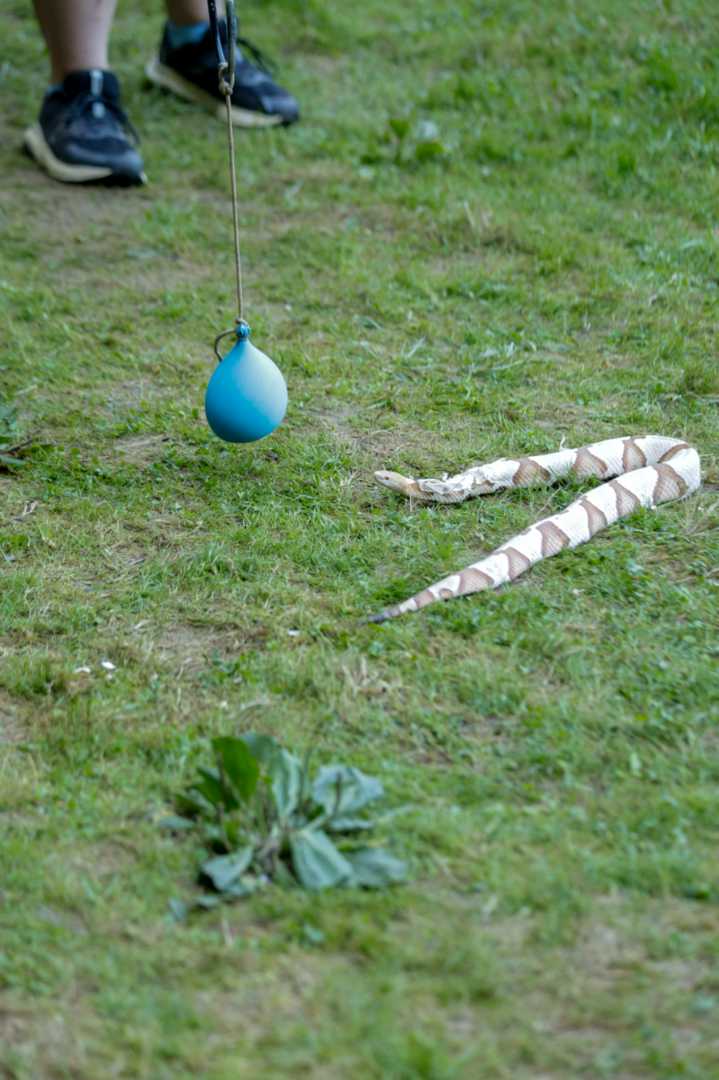 This year, he brought a red tailed hawk, eastern screech owl, two copperheads, a rattlesnake and a ball python. He keenly educated the boys on each animal and at the end of the presentation, the boys were allowed to touch and hold the ball python.