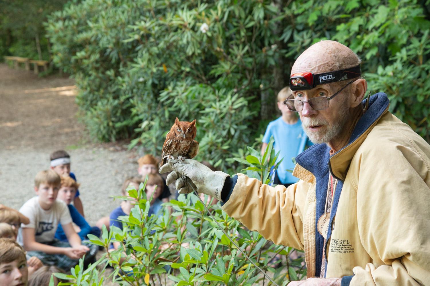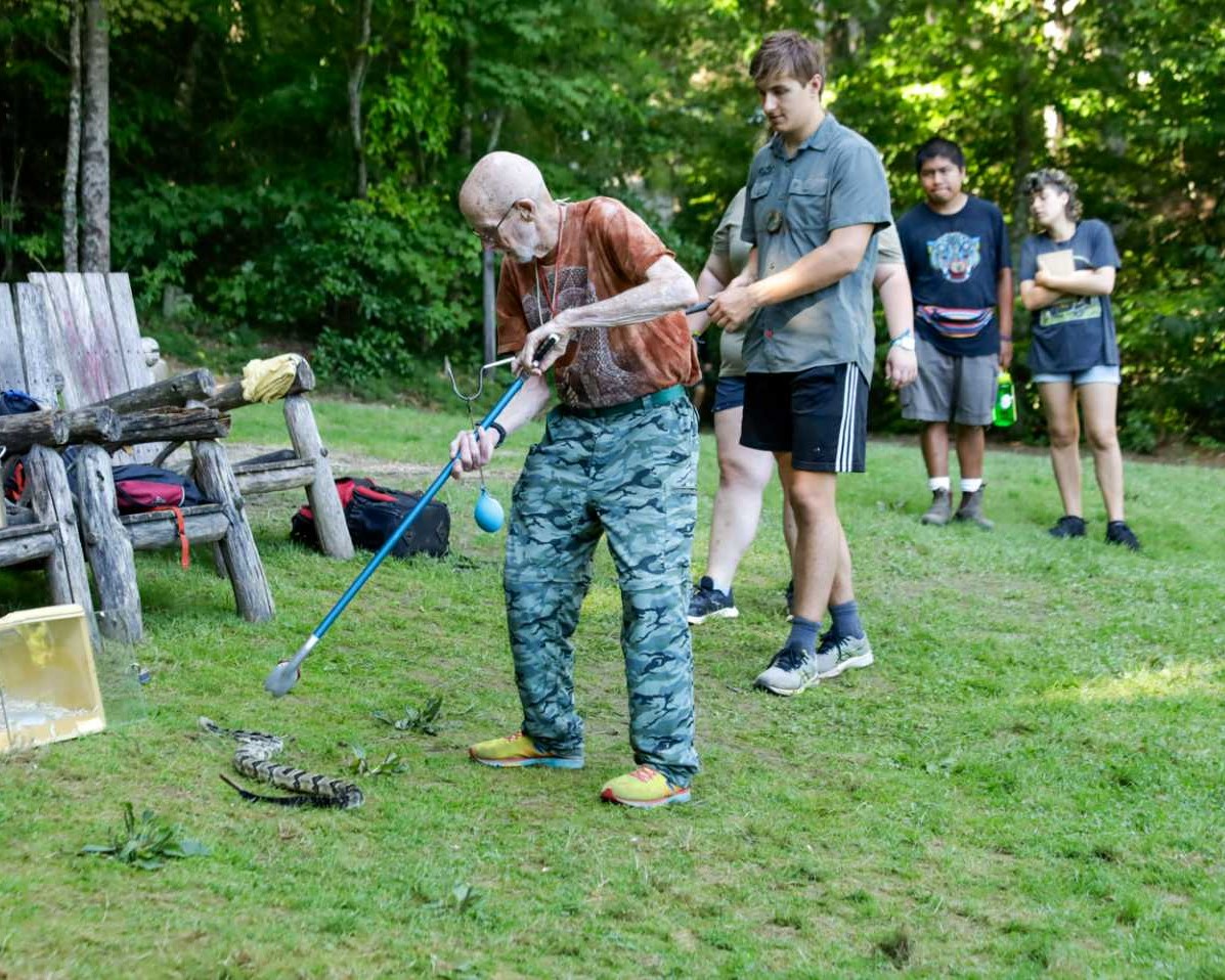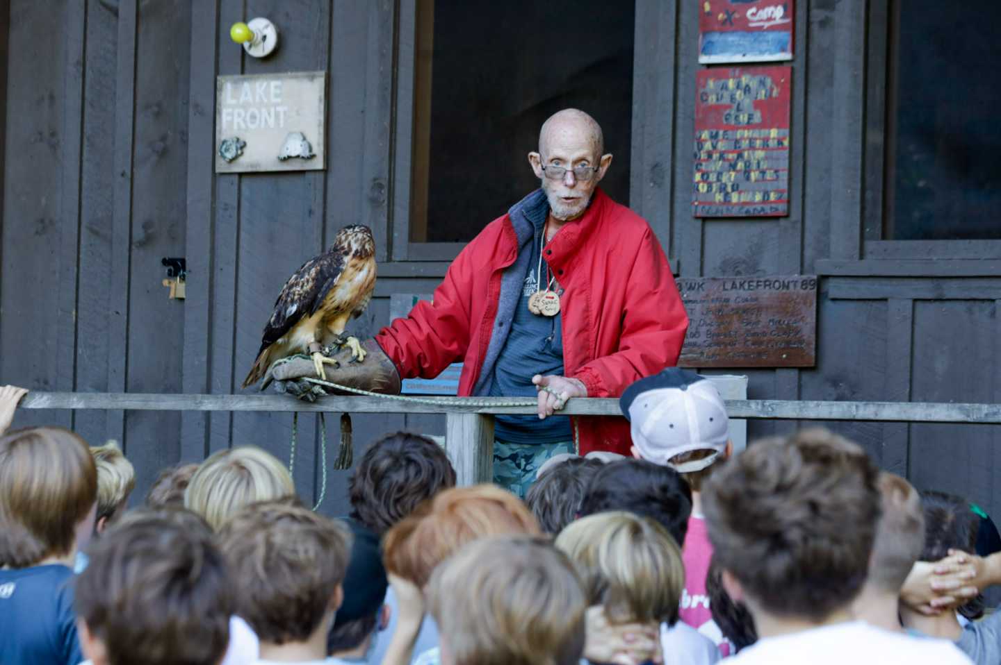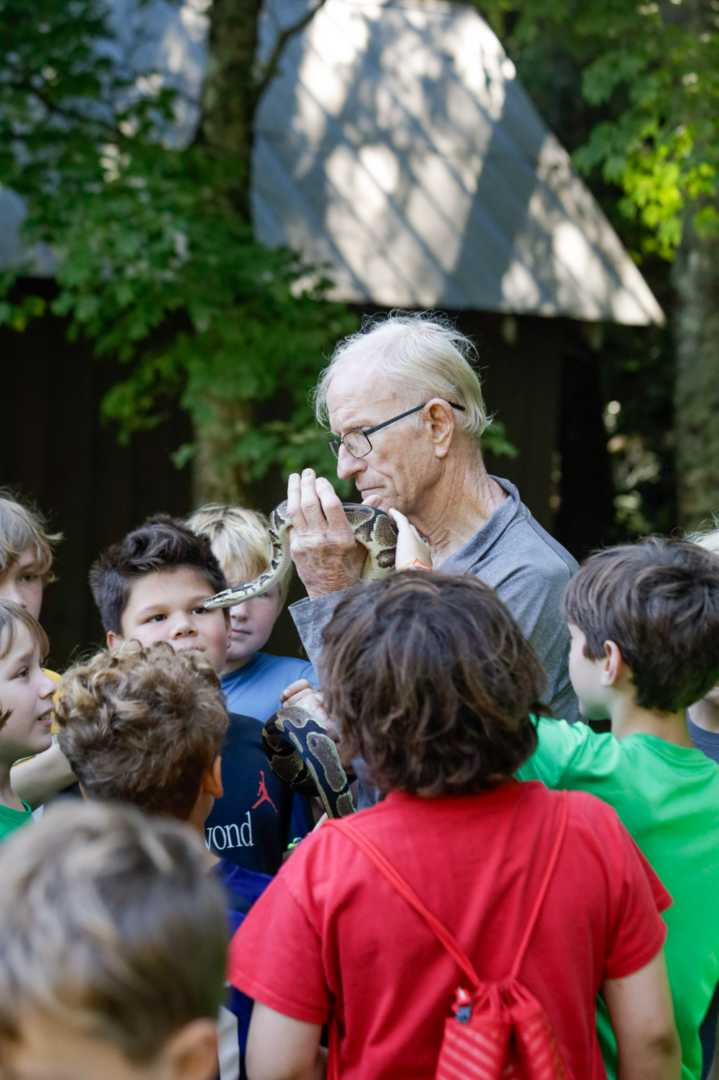 Longenecker visits camp each session, having the opportunity to show off some birds and snakes while educating the boys on how they live in the wild.