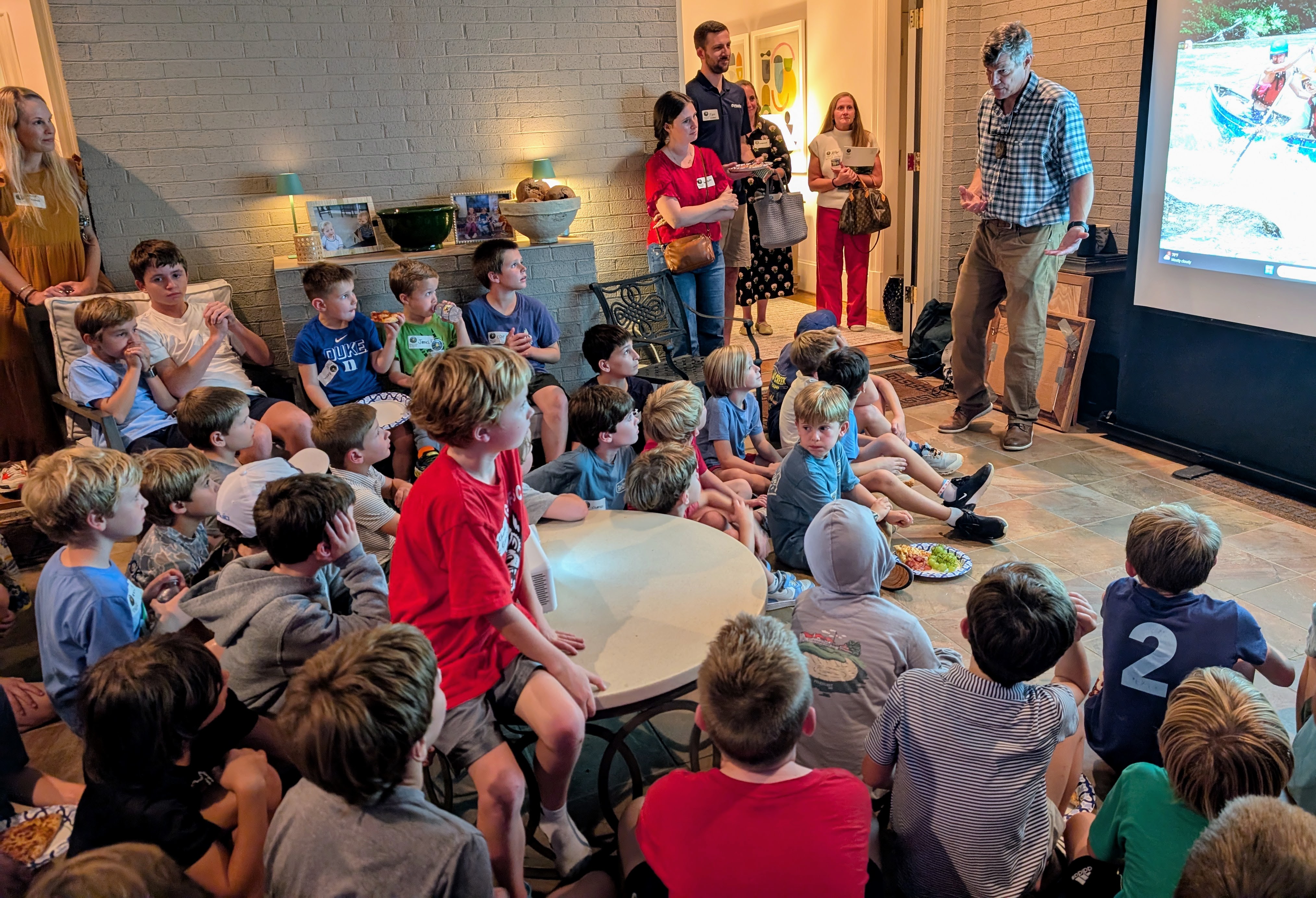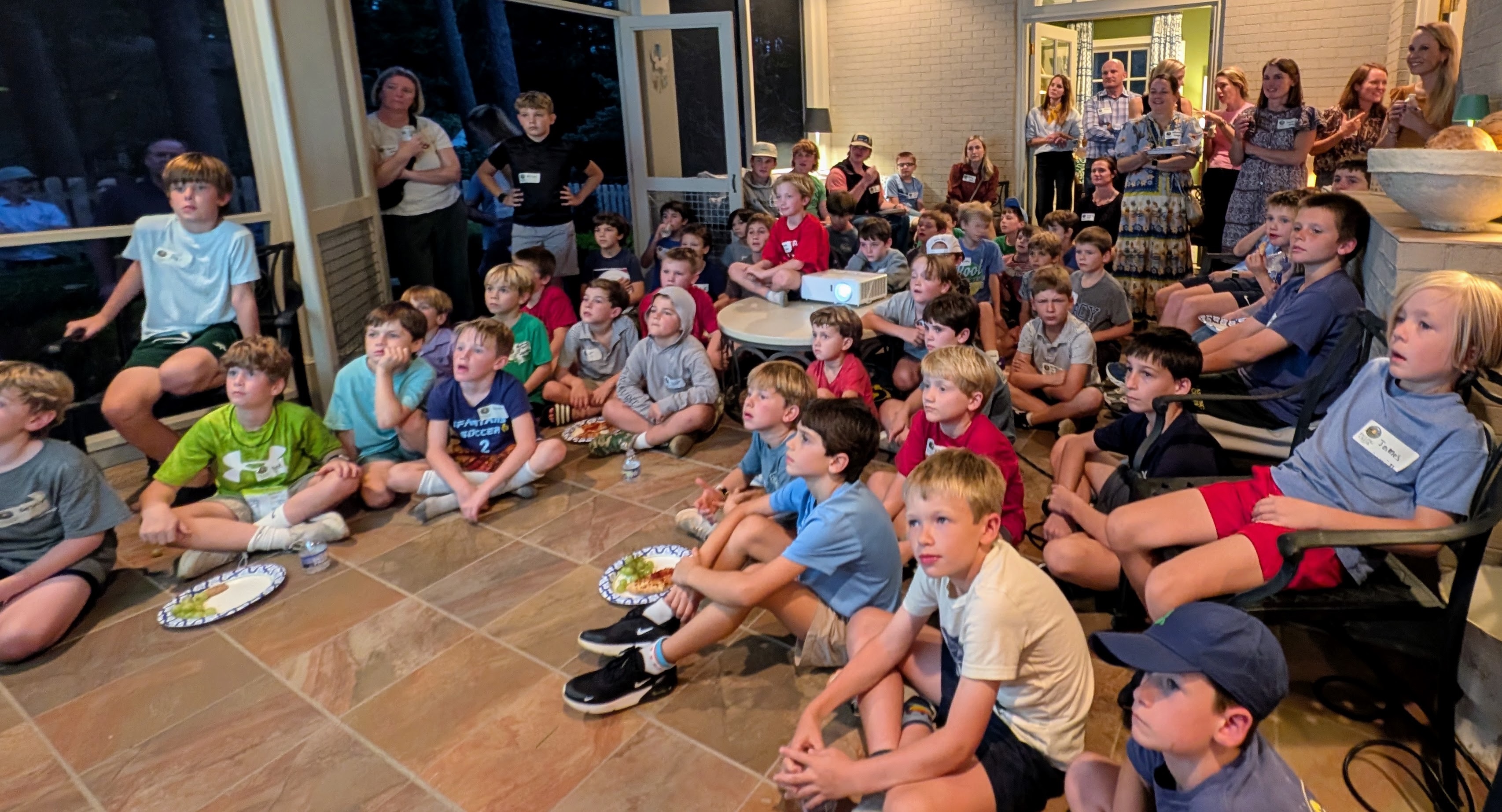As the boys arrived, they enjoyed eating pizza, playing in the backyard, and watching a slideshow of photos and short videos from the 2025 summer. It was a great opportunity for families interested in learning more about camp to connect with current camp families. Yates also enjoyed reconnecting with many FCC families.