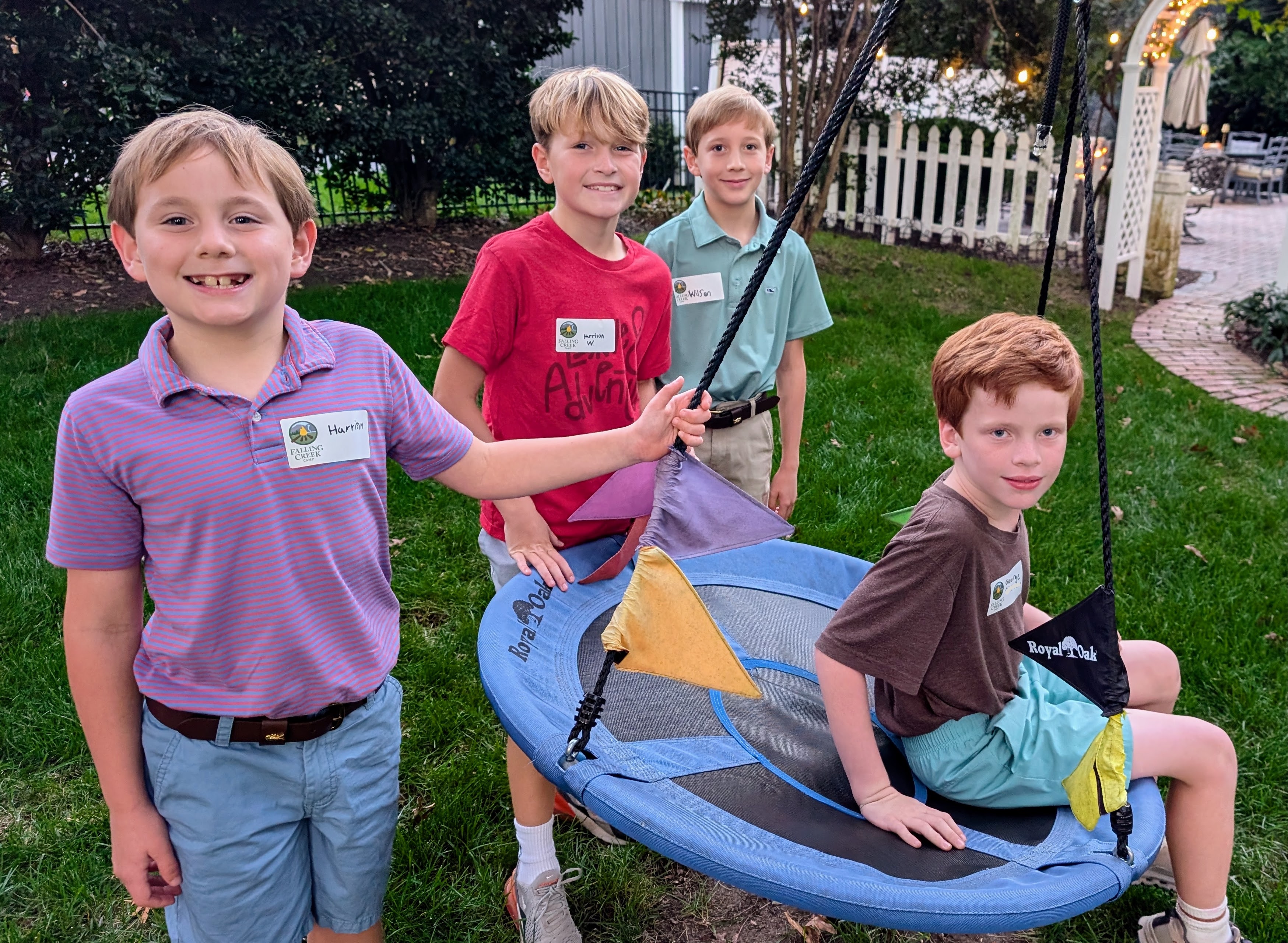 With great weather, the boys enjoyed playing on a giant tree swing in the Coopers’ front yard before starting the movie show.