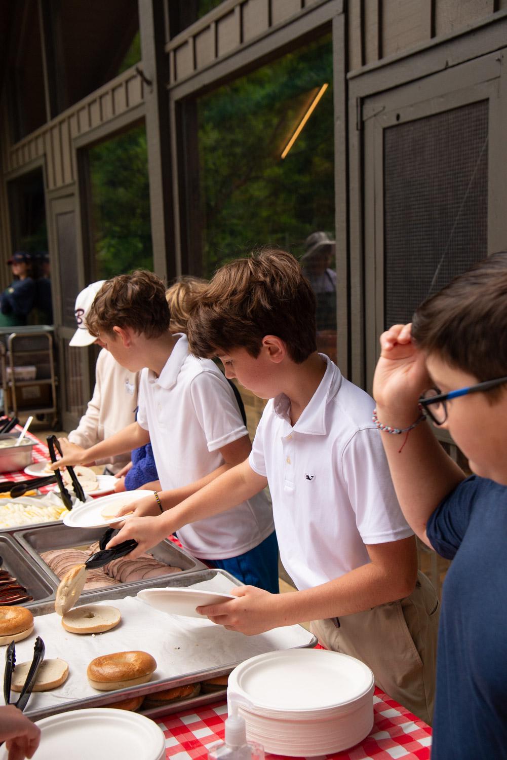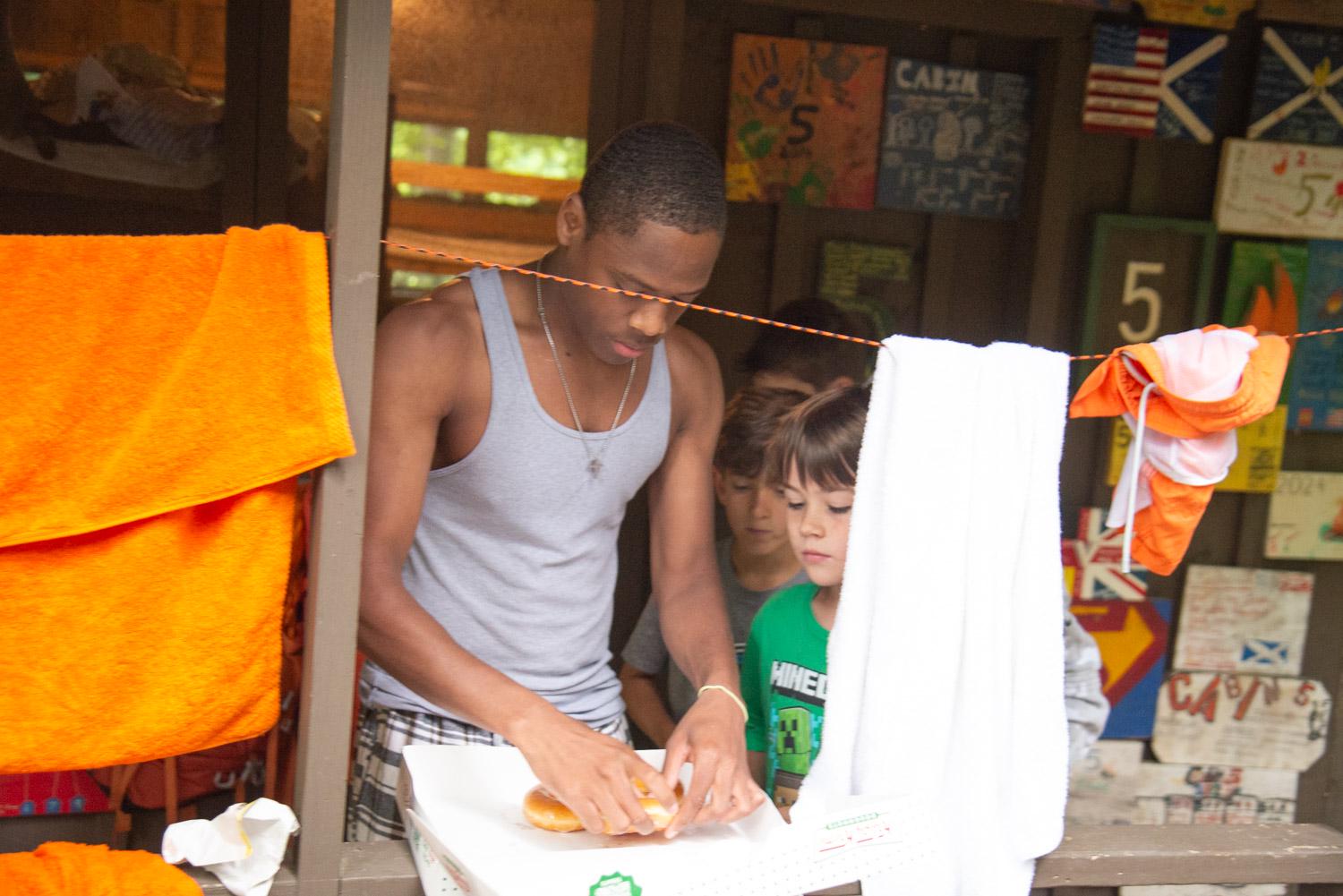 At camp, Sundays are sacred. We sleep in an extra hour and start the day with Krispy Kreme doughnuts — the perfect treat for a day that’s all about slowing down and reconnecting. Campers clean their cabins top to bottom (yes, even under the bunks!) and earn ice cream sundae line priority based on how clean their space is. A simple chore becomes a goal with a sweet reward.