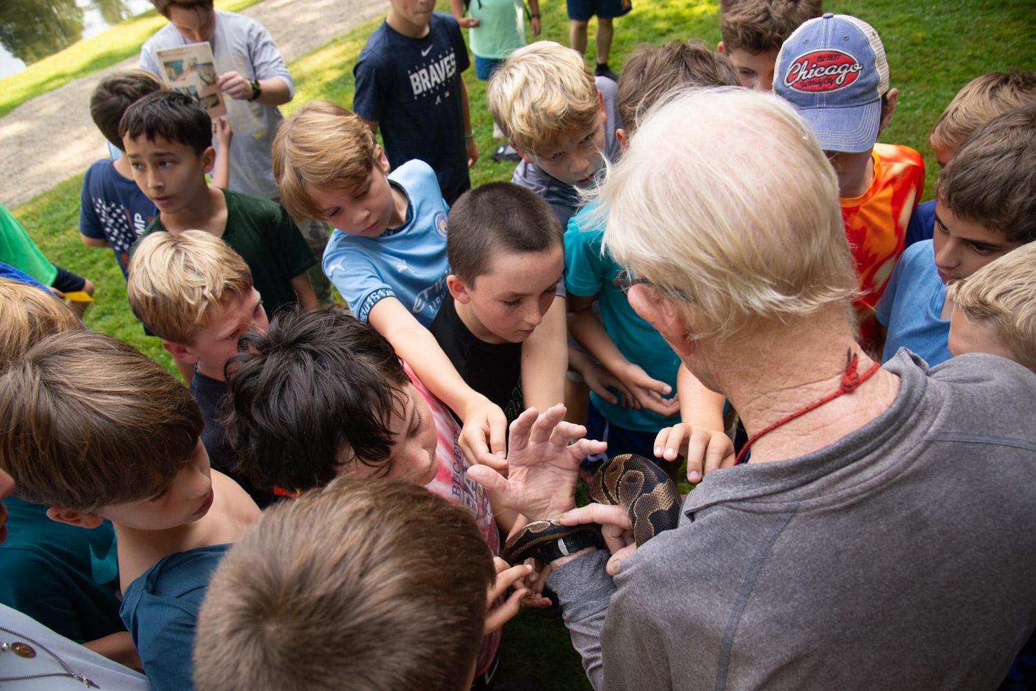 The boys learned how to safely identify venomous snakes like the rattlesnake and copperhead, and met a calm ball python too.