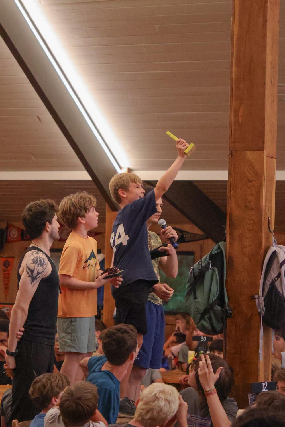Last night we celebrated camper progress and character with our Awards Banquet — a spirited tradition where boys are celebrated as each activity recognizes outstanding campers. While we typically hold the event in the McGrady Family Gym, this time we shifted venues. Campers were treated to a true banquet experience in the Dining Hall, complete with a three-course meal served by their counselors acting as waitstaff. Throughout dinner, activity awards were presented, and boys who earned Warrior and Ranger progressions were recognized — a reflection of their hard work, focus, and consistency all session long. !