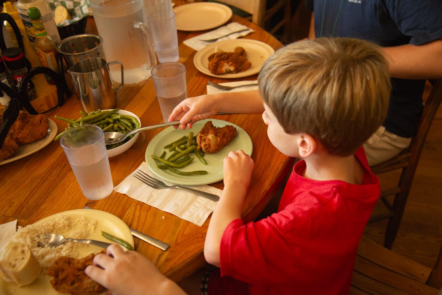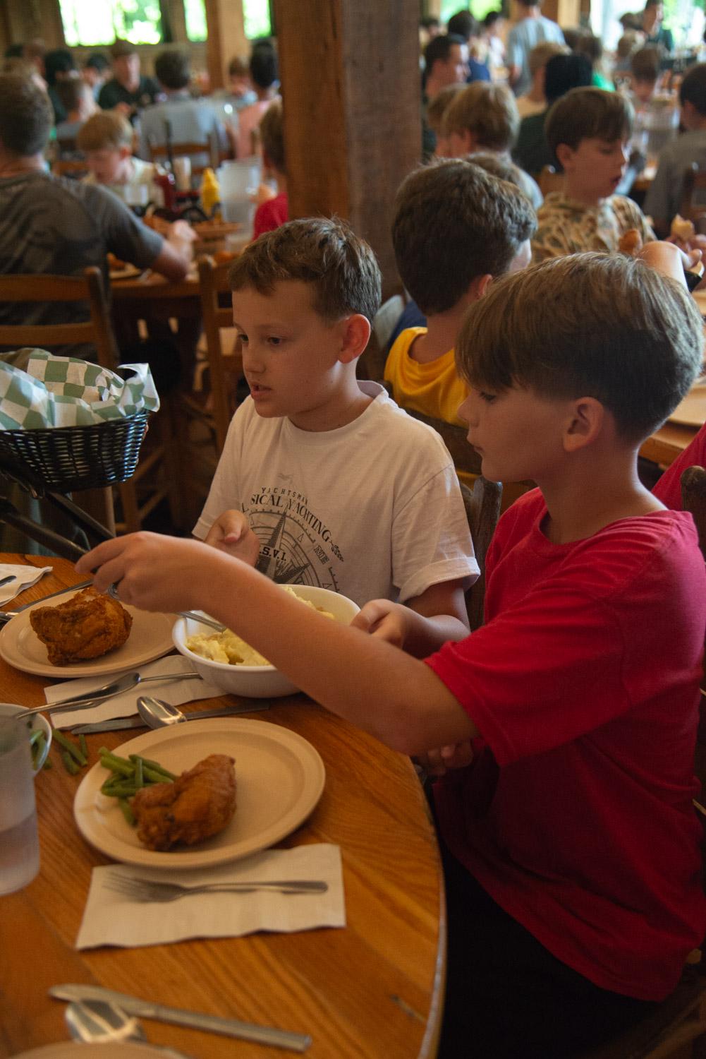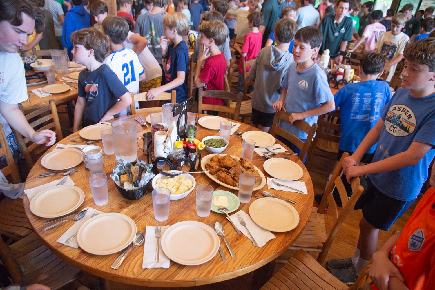 Lunch on Opening Day is more than just a meal—it’s the first time the cabin gathers around the table together. Campers find their spot and begin learning the rhythms of mealtime at Falling Creek.
