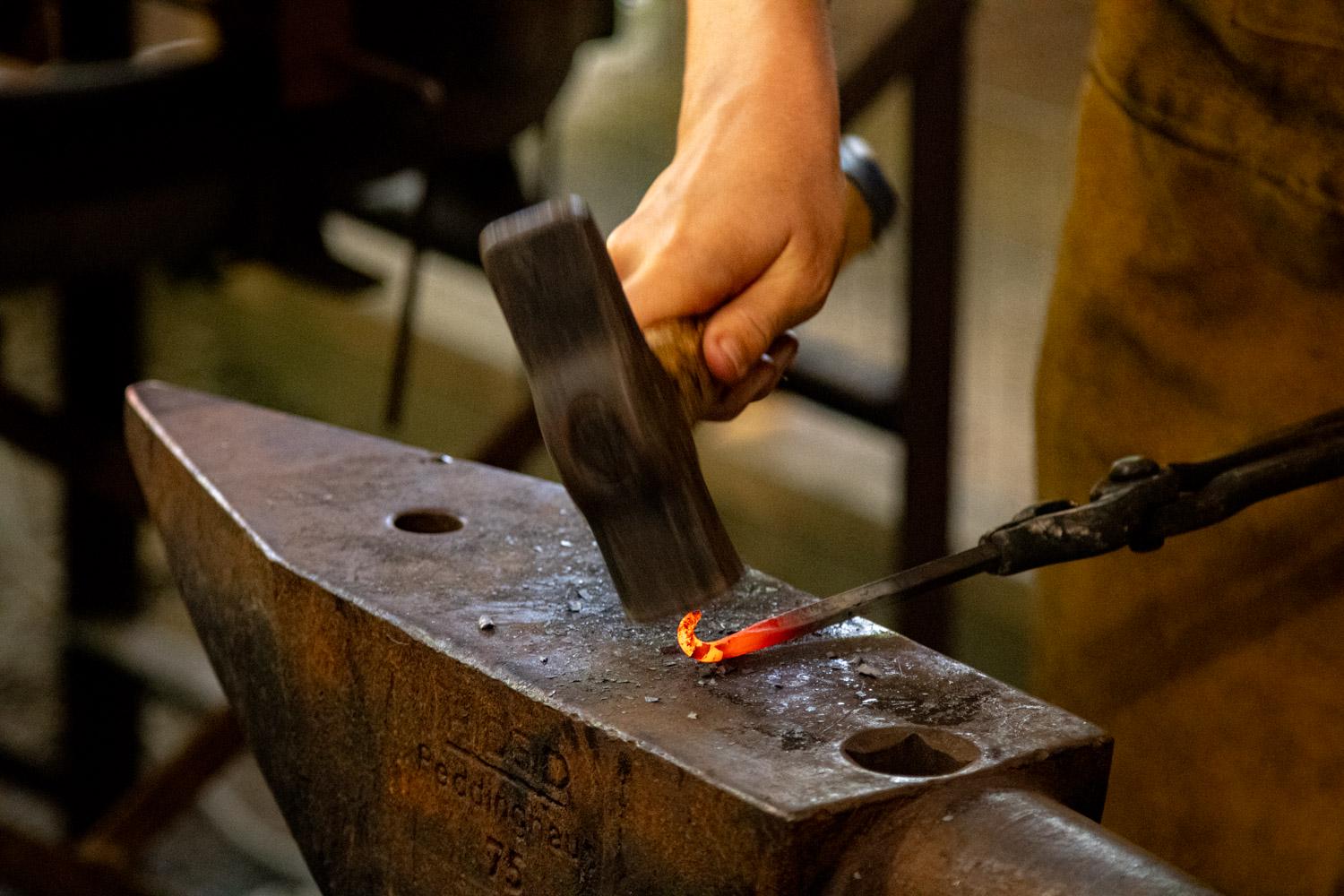 The sharp ring of a hammer striking red-hot iron; a spray of sparks shooting out from a well-placed strike; the earthy scent of burning coal from several traditional forges scattered around a timeless blacksmith shop. This could have been a scene from 150 years ago, but it happens every day right here at Falling Creek.