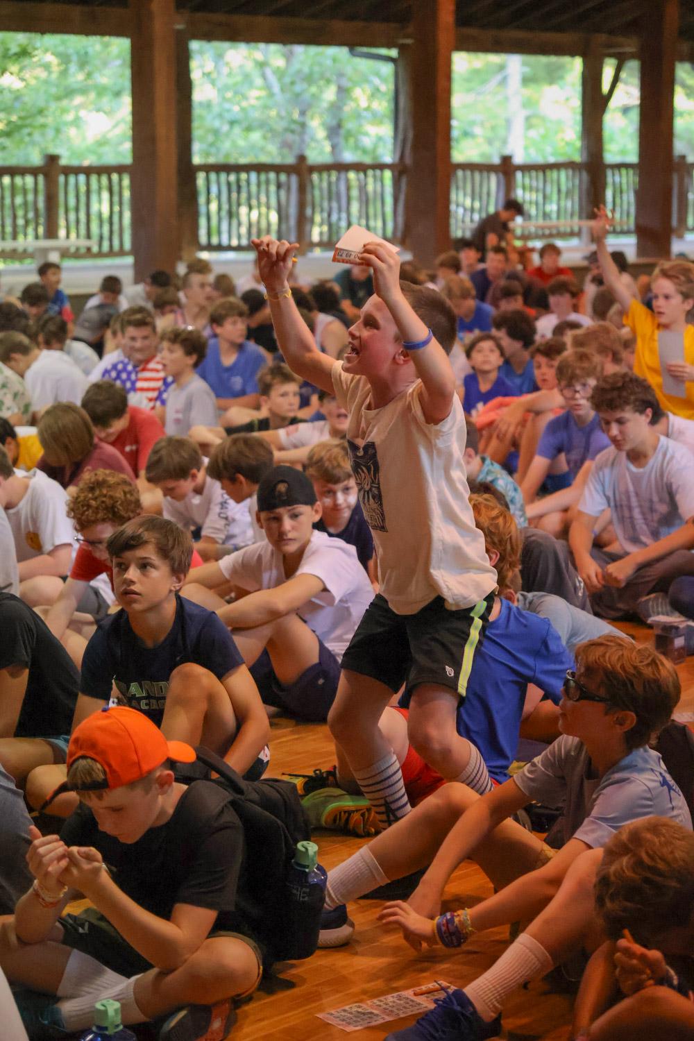 Boys showed up to breakfast decked out in red, white, and blue, piling their waffles high with strawberries, blueberries, and whipped cream. Then at Morning Assembly, the crowd went wild for the much-anticipated Hot Dog Eating Contest. Everyone loves a hot dog at 9:30am, right? Especially Yates, Whit, Beans, Schlierf, Cole—and this year’s champion: Ford Layman.