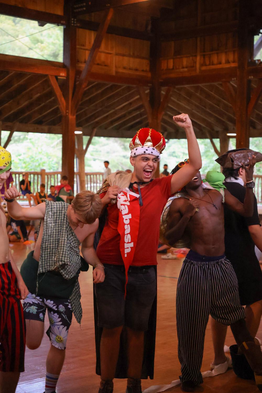 To play, the Sorrel and Robinia cabins competed in teams for who could dress up their counselor best to fit the theme. To start each round, there were several items in the center of the gym, and one camper from each team would race to grab a single item to bring back to their “costume chest”. They could use their “costume chest” in every round and build upon it as the game went on.