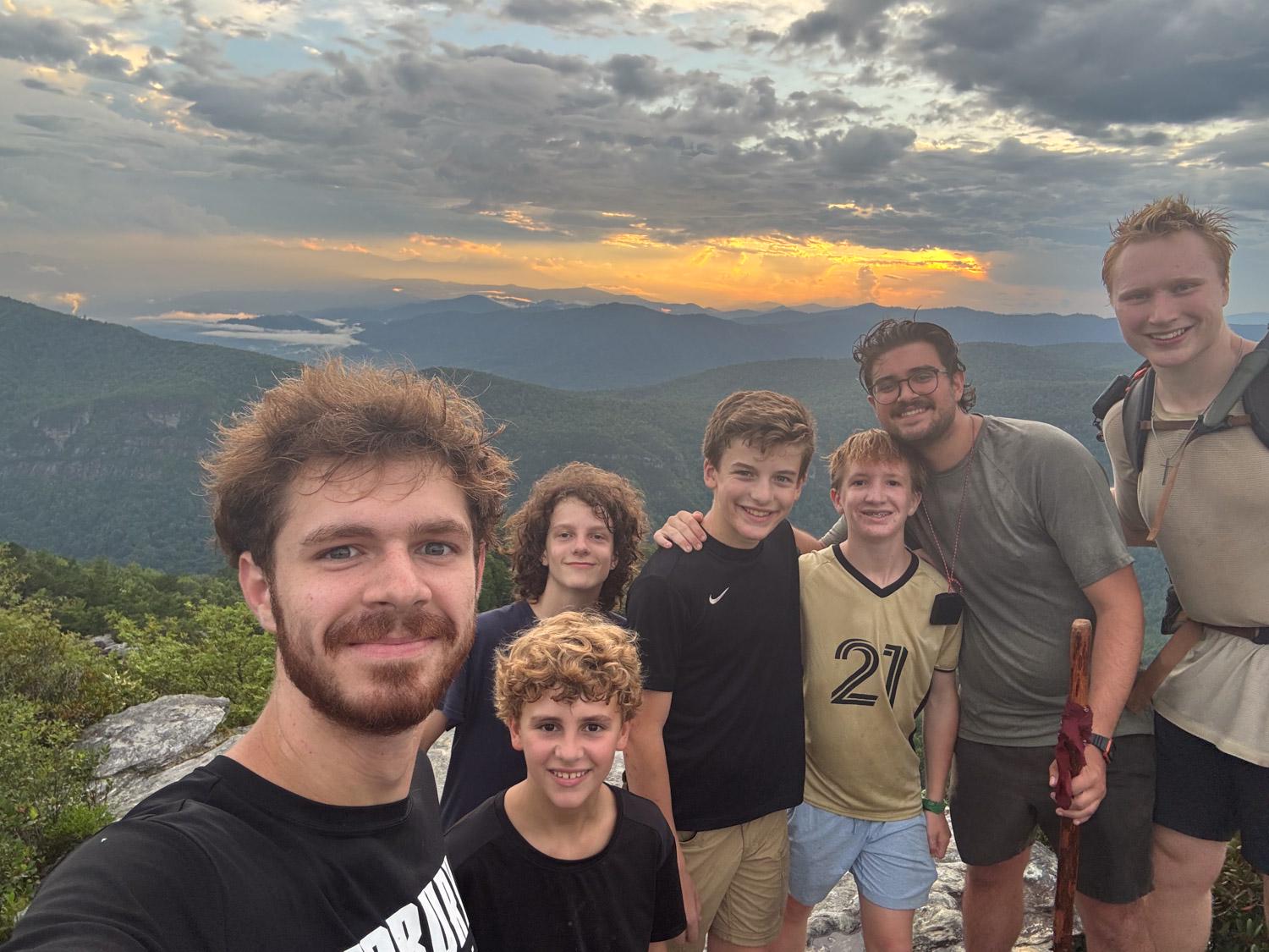 The backpacking crew set out on the Mountains to Sea Trail in Linville Gorge, North Carolina, expecting five days in the backcountry. What they got was even more unforgettable. Led by counselors Erik Soelberg from Dallas and Jonathan Strange from Wilmore, KY, the trip quickly turned into a masterclass in adaptation. Rain caused trail washouts, forcing mid-trip reroutes and late-night relocations — including one evening where the group had to break down camp and hike an extra half mile with a 600-foot elevation gain.