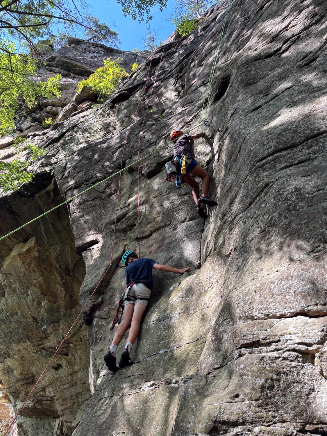 The Rock Climbing Five-Day Adventure took place at both Breaks Interstate Park in VA and Stone Mountain, North Carolina, where rain on day one made for an unforgettable (and slippery) start. The boys pushed through with a sense of humor, adjusting to wet rock conditions and cheering each other on.