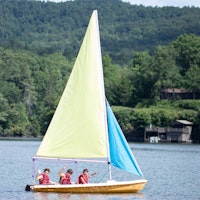 Falling Creek’s sailing facility is located about 10 minutes from camp on Lake Summit. Lake Summit is approximately 300 acres and has about 10 miles of shoreline. Our fleet of boats is includes Sunfish, Aquafin, and Laser Picos.